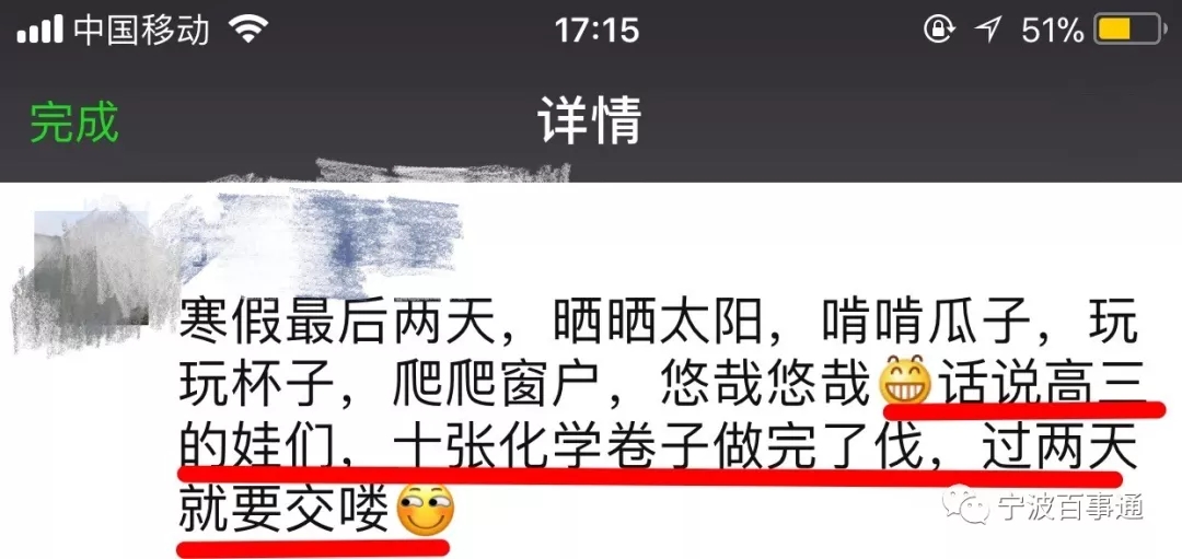 浙江寧波一重點(diǎn)中學(xué)化學(xué)老師更新朋友圈。