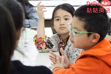 噠噠英語小學(xué)員舉手回答問題