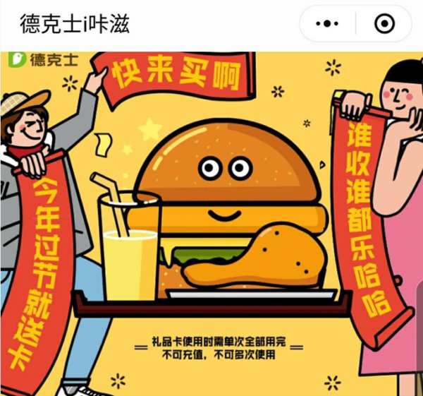 德克士i咔滋小程序春節(jié)禮品卡已上市