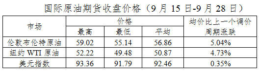 據(jù)央視財經(jīng)記者從國家發(fā)改委價格監(jiān)測中心了解,本輪成品油調(diào)價周期內(nèi)(9月15日-9月29日)國際油價大幅上漲,其中25日布倫特原油期貨價格漲至2015年7月以來最高水平。平均來看,本輪布倫特、WTI原油期貨價格比上輪調(diào)價周期上漲5.04%。