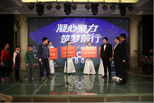 不僅如此,三家公司為了讓孩子們能夠提前感受到春節(jié)的溫暖和熱鬧氛圍,特意邀請(qǐng)學(xué)校孩子們參加由新諾亞文化發(fā)展集團(tuán)、北京睿至大數(shù)據(jù)有限公司、前海紅蓮基金管理有限公司于2月4日共同舉辦的“凝心聚力 筑夢(mèng)前行”年會(huì)。年會(huì)上,孩子們特別準(zhǔn)備了一段精彩的歌舞表演,以表達(dá)感謝之情。當(dāng)天還有一個(gè)讓孩子們欣喜的消息,三家公司在年會(huì)上再次向燕京小天鵝公益小學(xué)捐贈(zèng)共計(jì)25萬(wàn)元公益資金。