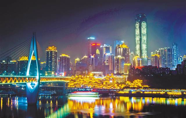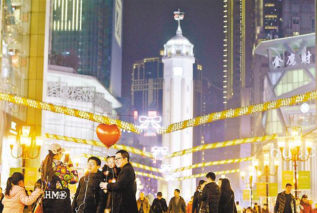 璀璨奪目的霓虹燈讓重慶充滿了濃郁的節(jié)日氛圍。記者 齊嵐森 攝