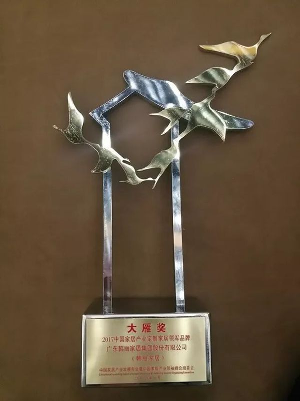2018年1月6日,第5屆中國家居產(chǎn)業(yè)發(fā)展年會暨“大雁獎”頒獎盛典在北京隆重舉行,韓麗家居不負(fù)眾望,一舉拿下中國家居產(chǎn)業(yè)“定制家居領(lǐng)軍品牌”稱號。作為標(biāo)準(zhǔn)化定制家居領(lǐng)導(dǎo)品牌之一,韓麗家居一直注重工藝,塑造品牌,為行業(yè)定制家居樹立標(biāo)桿形象。