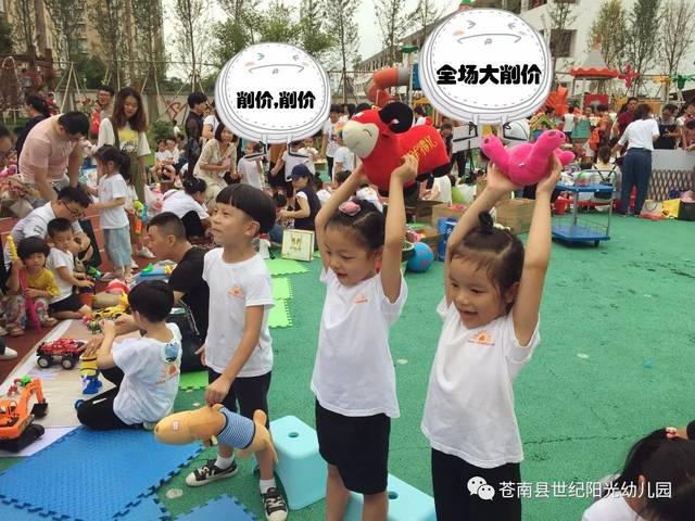 在這“國慶、“中秋”雙節(jié)臨近之際,為了讓大家度過一個(gè)難忘的“國慶?中秋”相逢會(huì),也為了讓孩子們初步體驗(yàn)公平買賣、勞動(dòng)快樂、扶危濟(jì)困,助人為樂,同時(shí)也為了大力弘揚(yáng)中華傳統(tǒng)文化和美德。在蒼南縣世紀(jì)陽光幼兒園的老師們和家長們通過一周的精心策劃、組織下,于今天下午在幼兒園大操場開展了一次別開生面的“全園大樂購”愛心跳蚤市場義賣活動(dòng)。