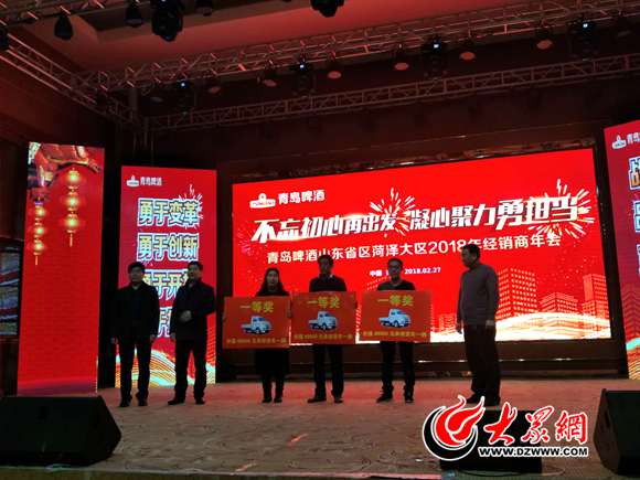 大眾網(wǎng)菏澤2月28日訊(記者 閆文倩 通訊員 王大鵬)2月27日,菏澤藝達酒店內(nèi)來自菏澤七縣四區(qū)的千余名青島啤酒經(jīng)銷商、批發(fā)商及合作伙伴共同參加了“不忘初心再出發(fā) 凝心聚力勇?lián)敗?2018年青島啤酒新春經(jīng)銷商年會。