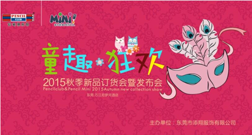 據(jù)悉12月13日~12月16日,添翔服飾繼續(xù)采用每季新品獨立訂貨的模式,在公司總部(東莞)開舉辦鉛筆俱樂部2015秋季新品訂貨會暨招商會。本次鉛筆俱樂部2015秋季新品訂貨會以“童趣-狂歡”為主題,一起聆聽秋天的童話,走進奇趣的兒童狂歡世界!讓我們一起拭目以待!