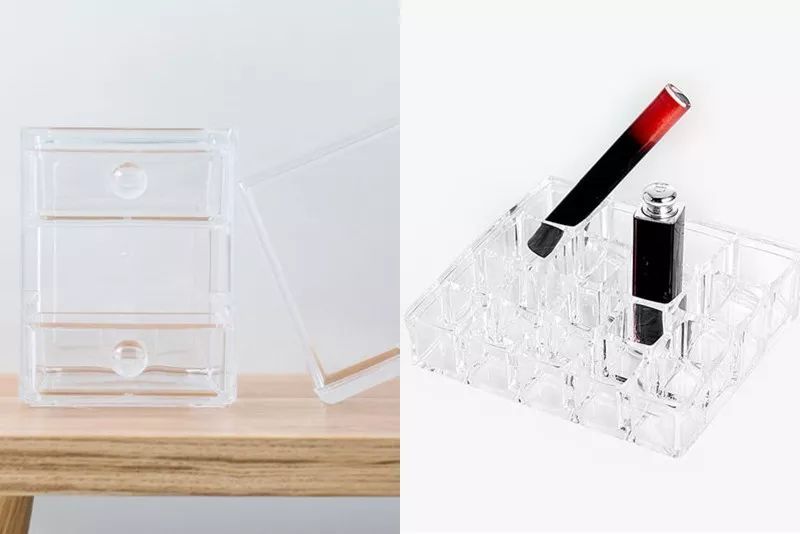 下面這兩件收納盒,分別收納化妝棉和口紅,女孩子們應(yīng)該都蠻需要的。
