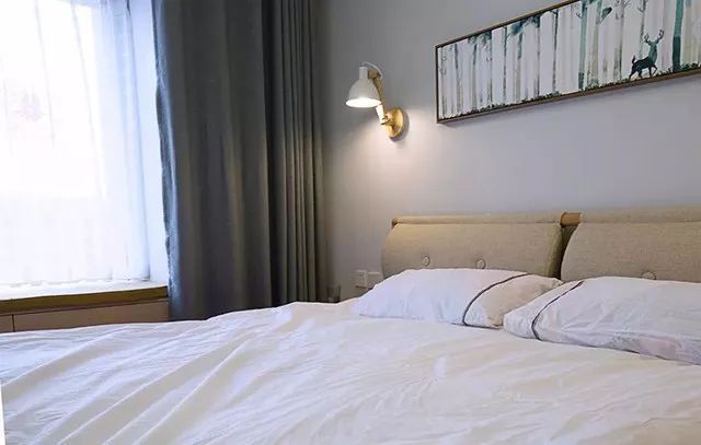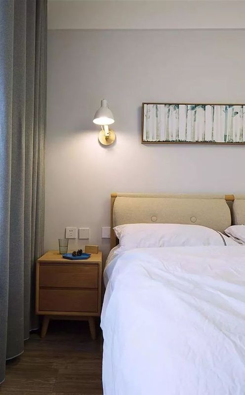 床頭柜上方的壁燈,充當臺燈的作用,而且節省了床頭柜臺面的位置,可用來放置其他的物品。