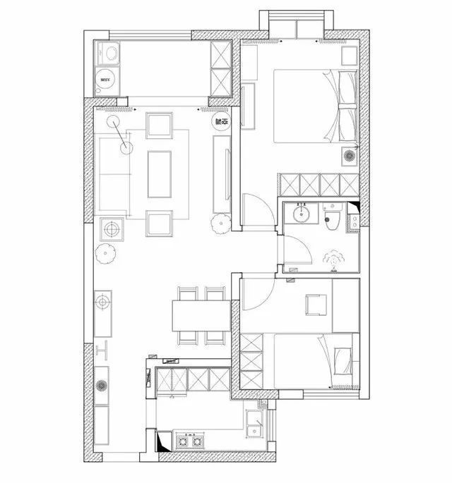 套75平米的小二房,整個空間在裝修上以簡單為基礎,結合上木質與清新的搭配,打造出一個自然舒適的溫馨質感,讓人置身其中,可以感受到一種輕松舒適的愜意感。