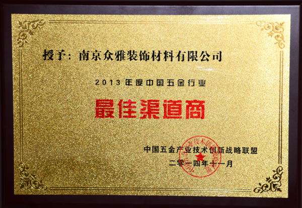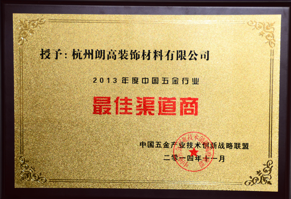 “中國五金行業(yè)最佳渠道商”獎(jiǎng)牌