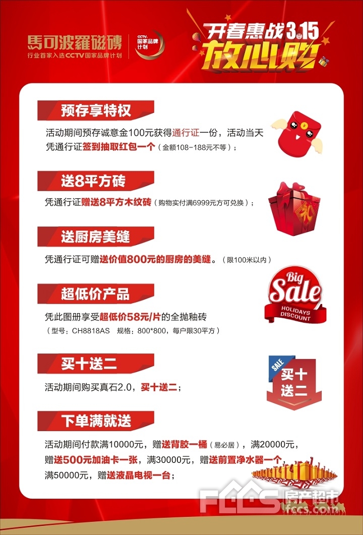 \u00A0\u00A0\u00A0\u00A0\u00A0 在這新春佳節(jié)之際,馬可波羅瓷磚為大家獻(xiàn)上開(kāi)春特惠。315誠(chéng)信購(gòu),開(kāi)春惠戰(zhàn)。