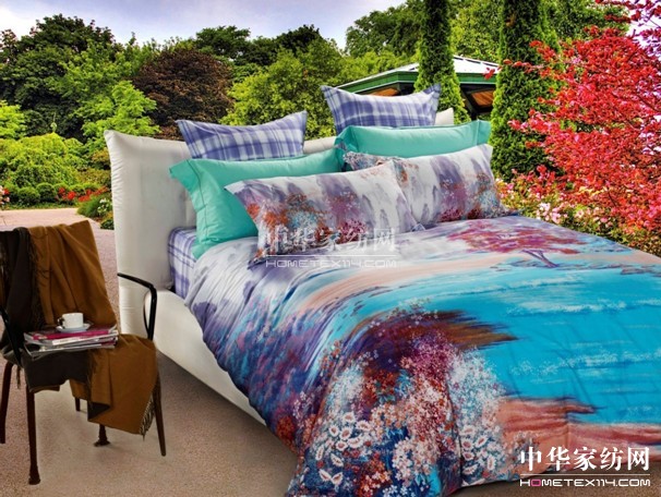 133*72活性印花面料,100%全棉。HOdo紅豆家紡2014春夏專版花型,平網大版印花,水彩風景畫,藝術感極強。