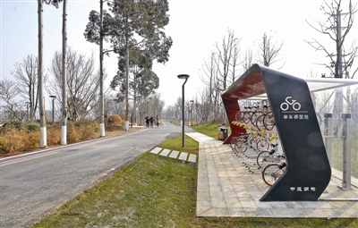 昨日下午,熊貓綠道嬌子立交示范段。雖然吹著冷風(fēng),但綠道上散步健走的人并不在少數(shù)。家住卓錦城的李先生和妻子鄧女士帶著兩個(gè)孩子,騎著共享單車,慢悠悠地享受綠道風(fēng)光。在他們兩側(cè),連排的翠竹和蒲葦在風(fēng)中搖曳,黃綠相間的草坪勾勒出春天的氣息。細(xì)心的路人低頭還會(huì)發(fā)現(xiàn),就連石板路上也印刻著熊貓的掌印。騎到中途,李先生的兒子突然停下車,興奮地沖進(jìn)路旁一座仿古涼亭,還跟草叢里的熊貓雕塑合了個(gè)影,“路邊可玩的太多了。”