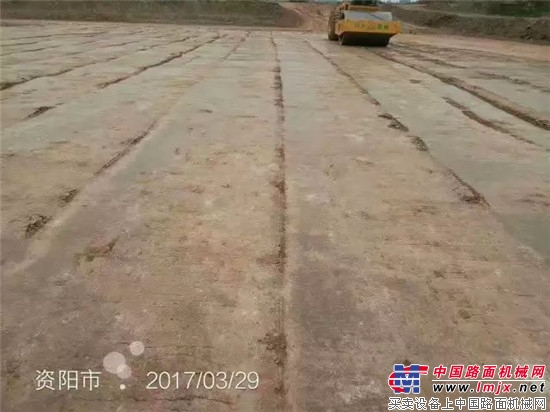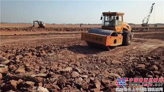 中大機械Power YZ36噸超重噸位、超大激振力壓路機,在天府國際機場,壓實80厘米厚度中風化砂質(zhì)泥巖,中風化砂巖等材料,僅需三遍,壓實度可達到96%以上,高質(zhì)、高效。
