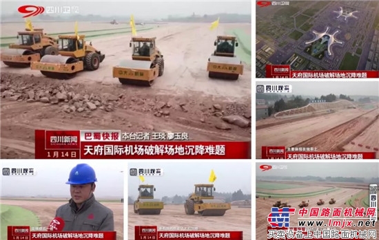 【四川觀察】新聞頻道也對中大機械Power YZ36單鋼輪基礎壓實利器做了報道:今天記者從成都天府國際機場建設指揮部了解到,由同濟大學,西南交大,中大機械等科研單位研制的“超大噸位、超大激振力土石方碾壓新工藝”已試驗完成,這將有效破解機場場地沉降難題,這也是全國首個整體采用該技術的機場項目。陜西中大機械四川片區(qū)負責人劉文俊在采訪時說 “(超大噸位、超大激振力土石方碾壓新工藝)主要體現(xiàn)在效率上能夠提高一倍,在成本方面能夠降低一半,能有效的防止工后沉降,為成都天府國際機場跑道做一個保障。”據(jù)了解,目前機場航站樓樁基工程已完工,春節(jié)前飛行區(qū)土石方建設將全部結(jié)束。