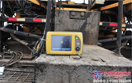 此次實驗還引入了3D智能找平控制系統(tǒng)為水穩(wěn)超厚度攤鋪保駕護航。3D智能找平控制系統(tǒng)在攤鋪中直接采用GPS智能輸入,控制設計頂面高程,無需打鋼釬及放找平線,更簡便,更精準,不受外界因素干擾,減少了不必要的誤差,找平效果更好,并且大大減少了施工現(xiàn)場測量工作。3D智能找平控制系統(tǒng)的使用也是這次水穩(wěn)基層整體成型攤鋪實驗的一個亮點。