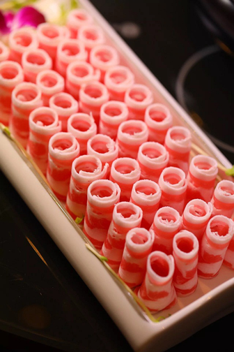 “一盤肉”則由北緯45度內(nèi)蒙古錫林郭勒草原直供,嚴(yán)選平均180天的烏珠穆沁和蘇尼特羔羊。肉質(zhì)細(xì)膩,脂肪均勻,鮮美幼嫩,久涮不老。