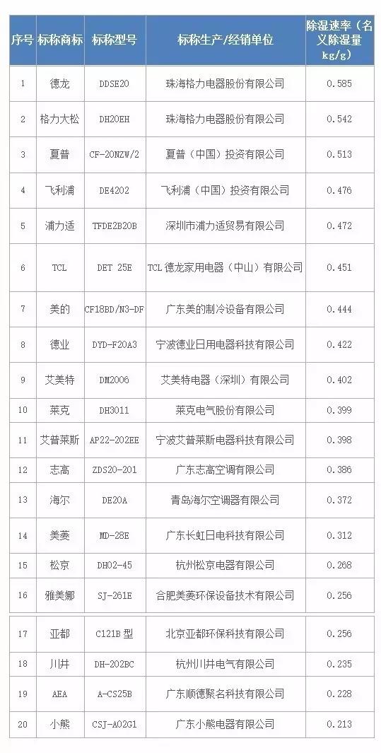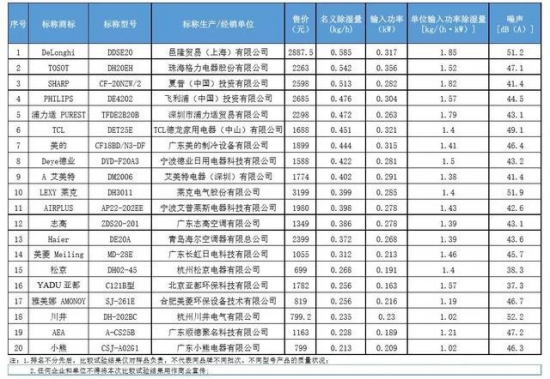 2017年4月24日,上海市消委會(huì)發(fā)布除濕機(jī)比較試驗(yàn)結(jié)果,通過(guò)對(duì)20件樣品的名義除濕量、單位輸入功率除濕量、噪聲等性能指標(biāo)進(jìn)行測(cè)試,結(jié)果顯示20件樣品性能差異較大。