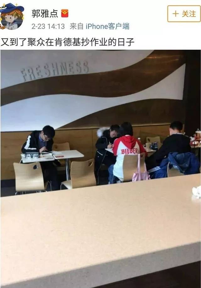趕作業(yè)怎么少得了KFC和金拱門(mén)?
