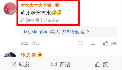 更不可思議的是,這次跨界還引發(fā)了眾多剁手黨蜂擁而至,在淘寶官微的“新年第一單”發(fā)問中,瀘州老窖的香水瞬間登頂熱門答案,話題度直線飆升。
