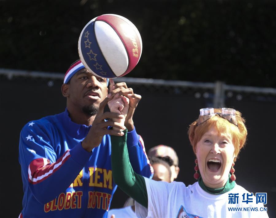 ↑2月21日,哈林籃球隊隊員在洛杉磯一所學校展示籃球技術(shù)。 1926年創(chuàng)立于芝加哥的美國哈林男子籃球隊訪問過100多個國家,他們將出神入化的籃球技術(shù)和幽默詼諧的表演融為一體,被稱為“世界上最受歡迎的籃球隊”。新華社發(fā)(趙漢榮攝)