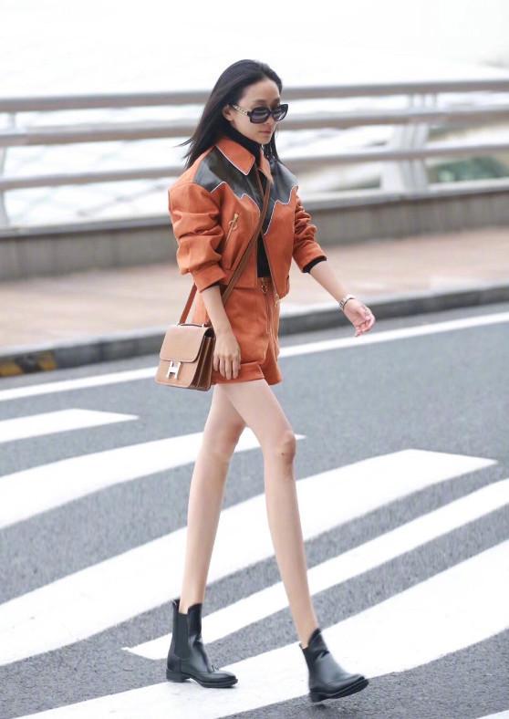 陶昕然身穿一套橘色套裝,露出修長白皙的雙腿,腳踩一雙黑色靴子,看上去休閑又充滿時(shí)尚,斜背一個(gè)同色調(diào)的包包,看上去時(shí)尚又充滿優(yōu)雅的感覺。