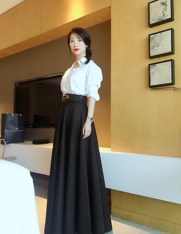 陶昕然身穿一件白色襯衫搭配一條黑色長裙,看上去既知性又優(yōu)雅,還帶有一種小女人味的性感,經(jīng)典的黑白搭配看上去簡單,也不會顯得單調(diào)。