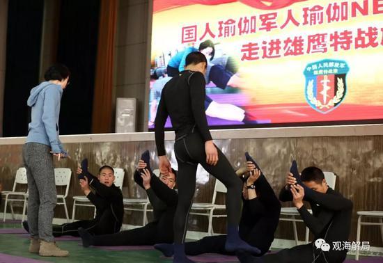 “繃腳,腿要直,往上甩,再高,手按直,上身不要晃。”2018年1月,滿滿雄性荷爾蒙的軍營里,女教員趙揚正在向官兵們展示瑜伽通身術(shù)這個“獨門秘籍”。