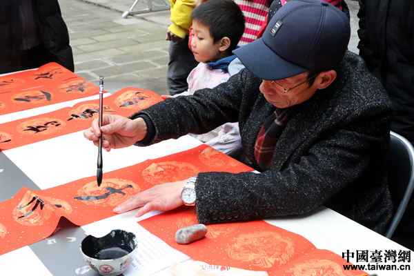 會龍村村民題寫春聯。(中國臺灣網 尹賽楠 攝)