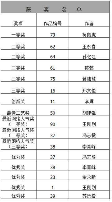 附本次大賽的獲獎(jiǎng)作品名單: