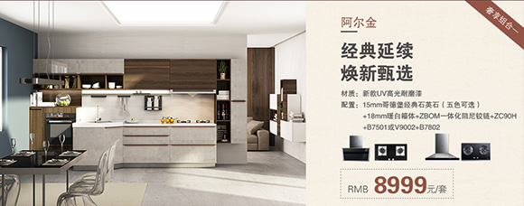 其中,“整體廚房每滿2000加送1000”、“煥新甄選8999元/套”、“德膜純品9999元/套”、“加500元購5000元升值券”四項(xiàng)促銷主項(xiàng)政策,助您以最低價(jià)選購阿爾金、伊甸時(shí)光、安娜小鎮(zhèn)、格林小鎮(zhèn)、Modern摩登彩玻等多套整體櫥柜;在配套產(chǎn)品上,參與進(jìn)店掃碼派福利活動(dòng),既有機(jī)會(huì)贏3000元福利券,購買指定水槽、收納、電器等產(chǎn)品。