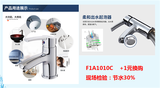 法恩莎衛(wèi)浴套間精品搭,好貨任性搭、搭滿三件即抽獎(jiǎng)一次,禮品大到洗衣機(jī),小到廚房五件套,法恩莎衛(wèi)浴精品全心出擊,另外買任意浴室柜加1元可獲得法恩莎衛(wèi)浴全銅節(jié)水龍頭一個(gè)。