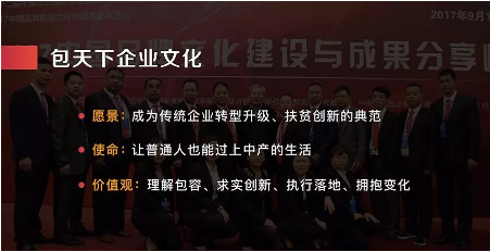 此外,包天下網(wǎng)絡科技在品牌建設中,十分注重企業(yè)文化的打造和傳播,特別是匠心文化的打造,其打造的企業(yè)商學院,現(xiàn)已開辦了多期課程,將匠心文化、創(chuàng)新包容、執(zhí)行落地、擁抱變化等價值觀,傳播給我們員工和上下游合伙人,使我們包天下形成良好的利益共同體、事業(yè)共同體和命運共同體。
