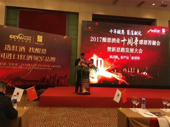 醍恩酒業(yè)的十年是不斷推陳出新的十年,是堅(jiān)守產(chǎn)品為核心的十年,是不斷升級服務(wù)的十年。醍恩酒業(yè)張偉總經(jīng)理致開幕詞并指出,醍恩酒業(yè)通過大刀闊斧的改革,最終發(fā)展成為700多家加盟店,4000多位經(jīng)銷商,占紅酒市場十分之一份額的行業(yè)翹楚。
