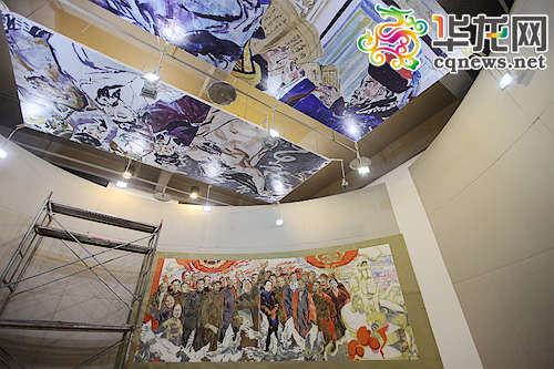 “歐洲西斯廷教堂有精美的頂畫,我們在畫展的創(chuàng)新方面,也完全可以這樣嘗試!”牟群向記者介紹本次展出方式的創(chuàng)新。 記者 李裕錕 攝
