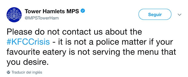哭笑不得的警方不得不在 Twitter 上呼吁民眾“請(qǐng)不要因?yàn)椤系禄C(jī)’聯(lián)系我們,如果你喜歡的餐廳沒有提供你想吃的菜,那不是一個(gè)警務(wù)問題。”
