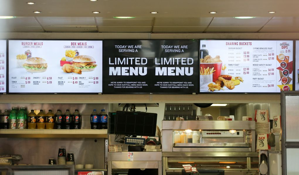 英國(guó)境內(nèi)有 500 多家肯德基暫停營(yíng)業(yè),員工們都被鼓勵(lì)去好好休個(gè)假。剩下的 300 多家繼續(xù)開業(yè)的門店,也大多縮短了營(yíng)業(yè)時(shí)間或者砍掉了一些菜品。