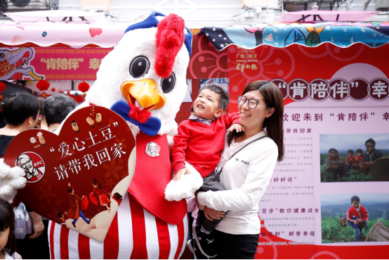 融入“公益慈善”與“兒童關(guān)愛”讓今年的廣府廟會(huì)成為了“最暖心”的一屆廟會(huì)。在廟會(huì)的創(chuàng)意市集中,由兒童繪畫大賽作品制作的24頂創(chuàng)意帳篷在陽光下閃耀美麗的光彩,其中一頂寫著肯德基的“肯陪伴幸福小屋”吸引了不少圍觀的人們。這里有捐一元愛心土豆義賣、百食百步教你健康成長、膳食寶塔小游戲、有愛好好說親子溝通手冊等互動(dòng)內(nèi)容。“寶貝,山區(qū)的哥哥姐姐們很辛苦勞動(dòng),我們也買一份土豆好不好?”在了解了肯德基推薦的“愛心土豆”是來自貧困山區(qū)孩子們種植的時(shí)候,圍觀的人們紛紛慷慨解囊,讓肯德基的姐姐們忙得不亦樂乎。送上愛心的人們除了購買到優(yōu)質(zhì)的土豆還能獲得一套肯德基與廣州郵政合作的廣府廟會(huì)的“首日封”愛心明信片,作為廟會(huì)的幸福記錄或是為親朋好友寄去美好的祝福。