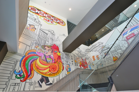 巨幅的廣府大道主題手繪墻、絢麗的民俗文化巡游墻、延綿的鑊耳屋嵌著吉祥的中式回紋、融合非遺技藝的四季花剪紙、孩子們創(chuàng)作的通草畫裝飾……餐廳融入廣府文化的建筑風(fēng)格與廣府廟會(huì)場景完美融合,在這里以街頭表演的形式上演“廣味的喜劇”,別有一番情趣。
