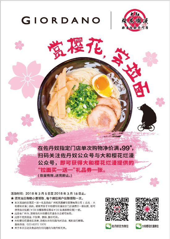 原標題:店鋪福利|佐丹奴喊你們來吃拉面啦