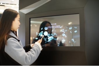 展區(qū)現(xiàn)場設(shè)立4T探索區(qū)域,通過高科技的全息投影技術(shù),立體呈現(xiàn)T\u00A0MARK的4T理念,以獨(dú)特的視覺引領(lǐng)消費(fèi)者逐步認(rèn)識鉆石的全新思維,讓消費(fèi)者細(xì)細(xì)品味T\u00A0MARK的魅力之源,開啟了解T\u00A0MARK的第一步。