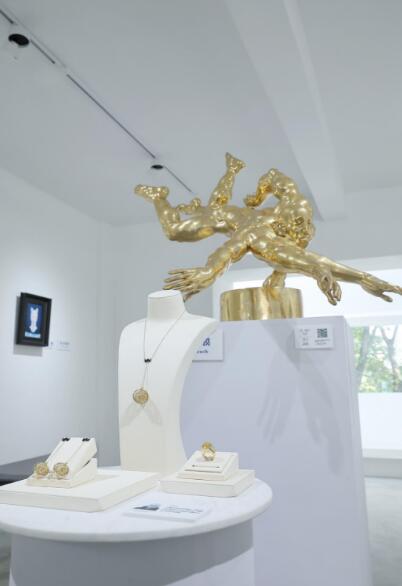 展覽中,六位參展藝術(shù)家的作品以不同的“跨界關(guān)鍵詞”一一和六位法國當(dāng)代設(shè)計師進行了“跨越時空”的對話。其中,周大福簽約的當(dāng)代知名設(shè)計師創(chuàng)作的《謎》系列珠寶臻品對話藝術(shù)家李嘉豪,他們的作品以“迷幻宮殿”為共通點,神秘而多面;《簡》系列對話藝術(shù)家盧洪新,以“極簡主義”化繁為簡;《境》系列對話藝術(shù)家張廣先,獨特的“鏡面藝術(shù)”直抵人心;《明》系列“對話”藝術(shù)家林昀,凸顯剛?cè)岵摹芭约±怼?《和》系列對話藝術(shù)家周凌璇,以和為道描繪“理想世界”;《旋》系列對話藝術(shù)家梁道鼎,一紋一路盡顯“旋轉(zhuǎn)之美”。這種以全新視角演繹珠寶跨界藝術(shù)、兩兩之間呈現(xiàn)參展作品珠璧交輝的展覽呈現(xiàn)形式,成為本次展覽的一大亮點,也豐富展示了周大福“宮”系列珠寶臻品不一樣的別致之美。