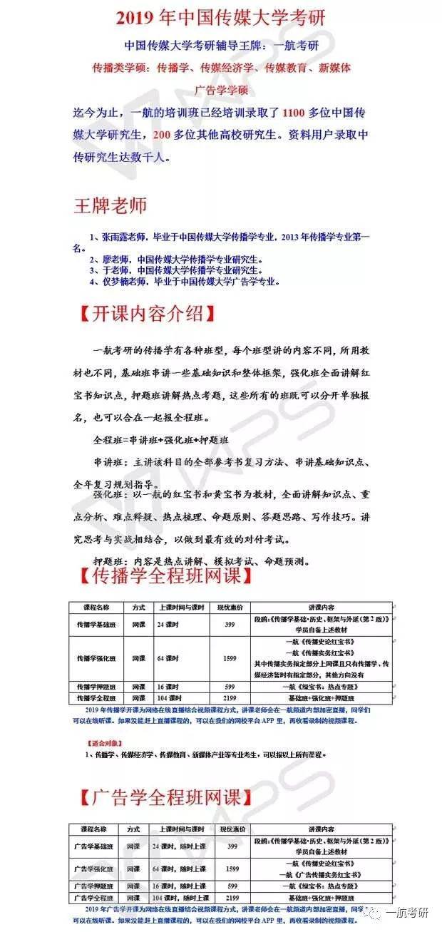 一航019年中國(guó)傳媒大學(xué)傳播學(xué)考研培訓(xùn)班課程表
