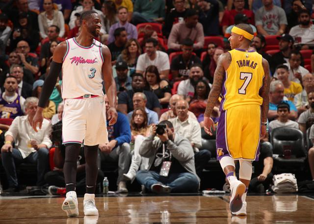 韋德賽場上與小托馬斯說笑賽季過半,季后賽中韋德又能否“打臉”質(zhì)疑者,讓我們拭目以待