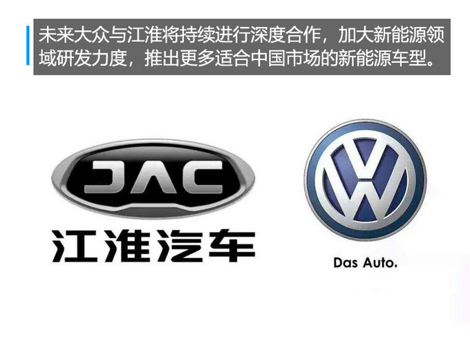 大眾品牌在2017年與江淮汽車達成合作,計劃在華國產純電動車型。海茲曼表示:“關于與江淮的合作,短期內合資企業所生產的車型更多的是基于現有車型進行開發、設計和制造,從中期來看,雙方將會共同開發車型。”江淮大眾將基于大眾集團旗下西亞特品牌車型,開發出第一款純電動SUV,該車目前已進入路試階段。未來大眾與江淮將持續進行深度合作,加大研發力度,推出更多適合中國市場的新能源車型。