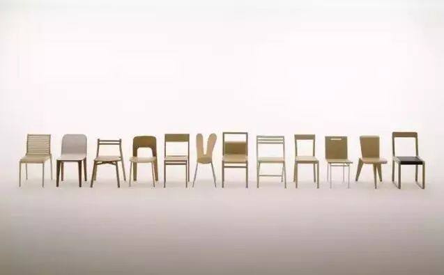 這個(gè)Armless Chair系列,主題是“請(qǐng)根據(jù)日本的審美意識(shí)設(shè)計(jì)小椅子”,集合了安積伸、Jasper Morrison、黑川雅之、深澤直人和Alberto Meda等大師的共12張單椅。