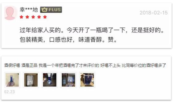 除了評(píng)分,消費(fèi)者的五星好評(píng)也是直接表達(dá)了對(duì)洋河實(shí)打?qū)嵉南矚g。