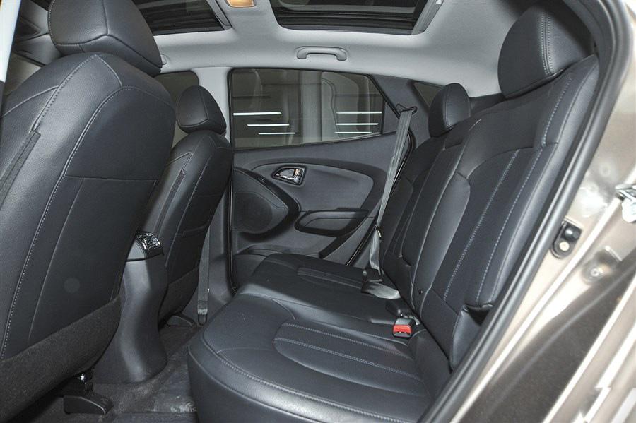 空間方面:現(xiàn)代ix35車身尺寸為長4420mm×寬1820mm×高1660mm,軸距為2640mm,與同級競爭車型相比,內部空間還算不錯,身高180cm左右的人都能找到舒適的坐姿。后排腿部空間比較充裕,中等身高的人都能有一拳頭左右的余量,而且后排地板平整可以容下三人乘坐,不足的是沒有中間頭枕。
