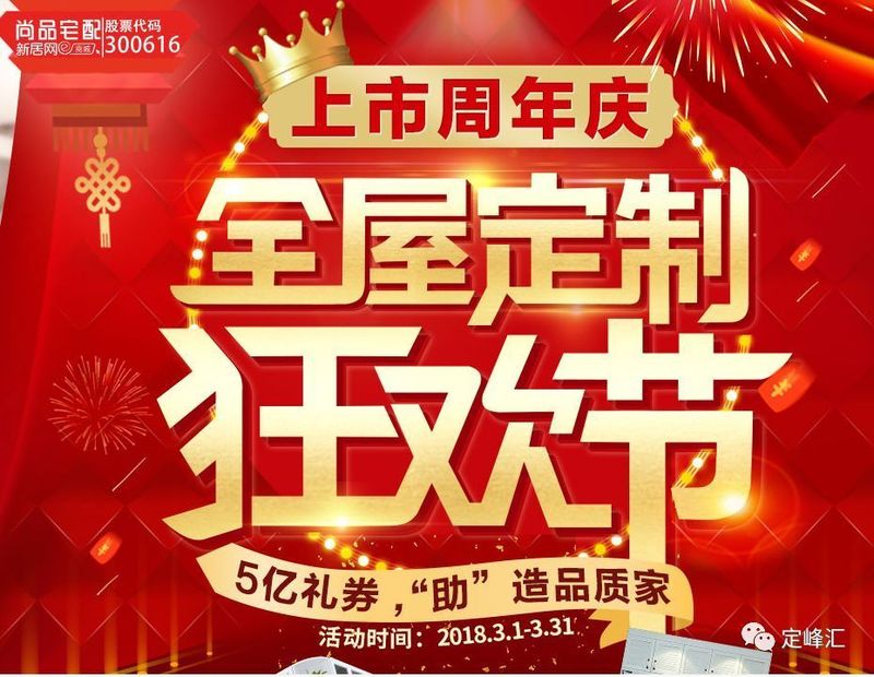 這個315,尚品宅配特別推出了上市周年慶,全屋定制狂歡節(jié),5億元禮券,助造品質(zhì)家的盛大優(yōu)惠。