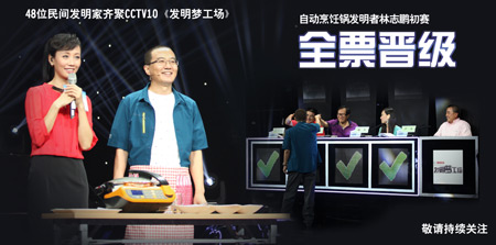\u00A0\u00A0\u00A0\u00A0捷賽自動(dòng)烹飪鍋發(fā)明者林志鵬攜自動(dòng)烹飪鍋參加中央電視臺(tái)科教頻道大型發(fā)明節(jié)目真人秀節(jié)目――《發(fā)明夢(mèng)工場(chǎng)》,初賽第三場(chǎng)自動(dòng)烹飪鍋項(xiàng)目獲四位導(dǎo)師(陳光標(biāo)王水民喻舟和嚴(yán)圣)全票通過,初賽順利晉級(jí)。